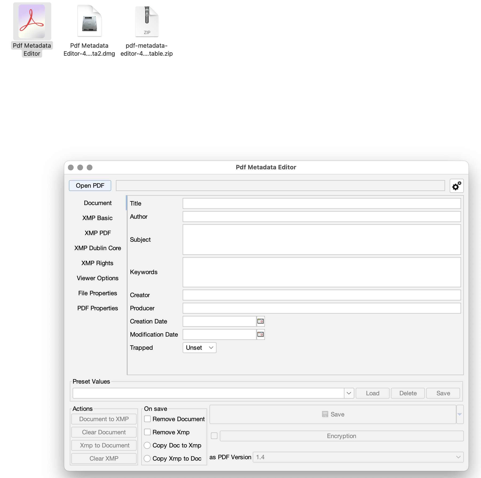 After completing these steps, Pdf Metadata Editor should open successfully. You may need to repeat this process the first time you open the app after downloading it.