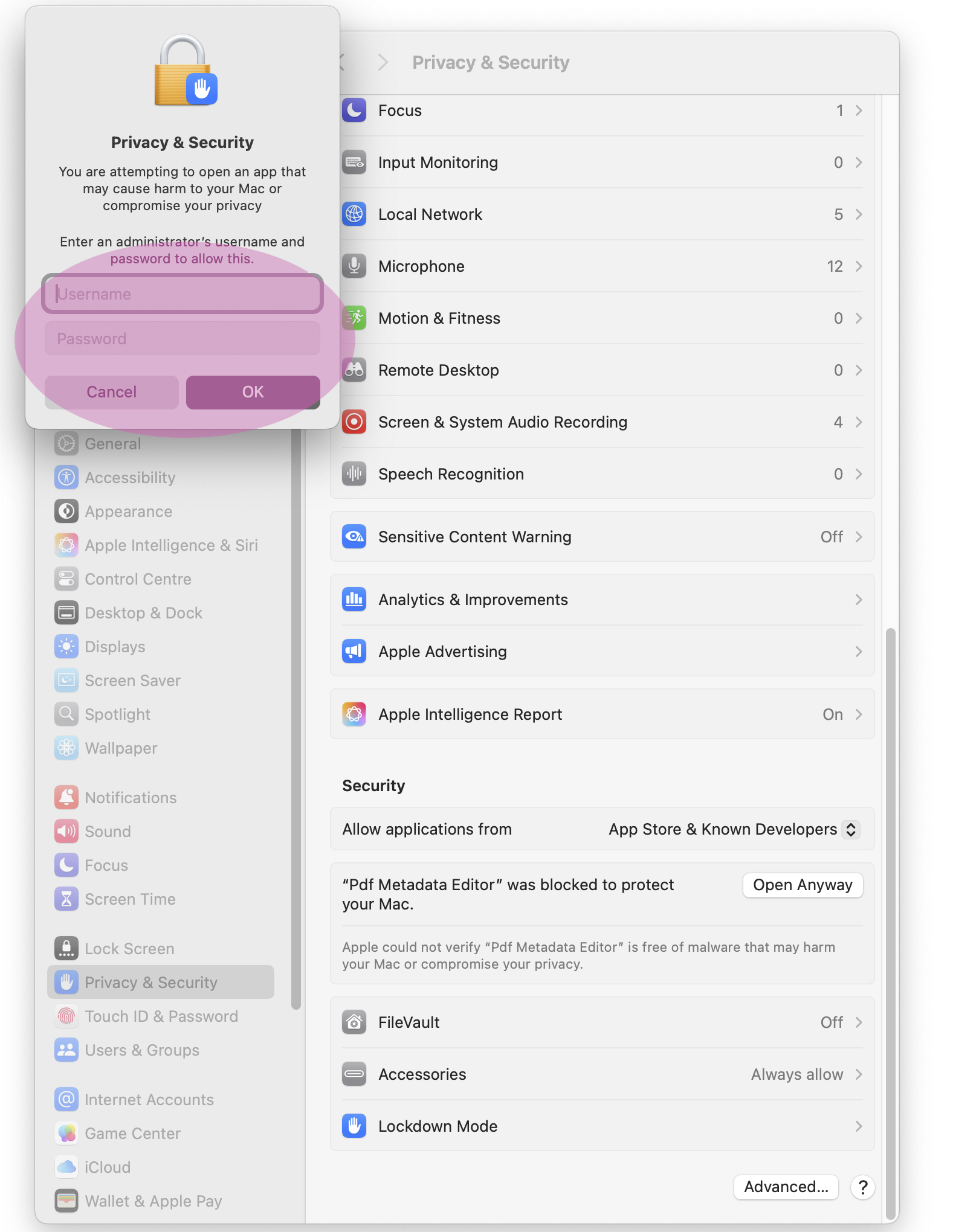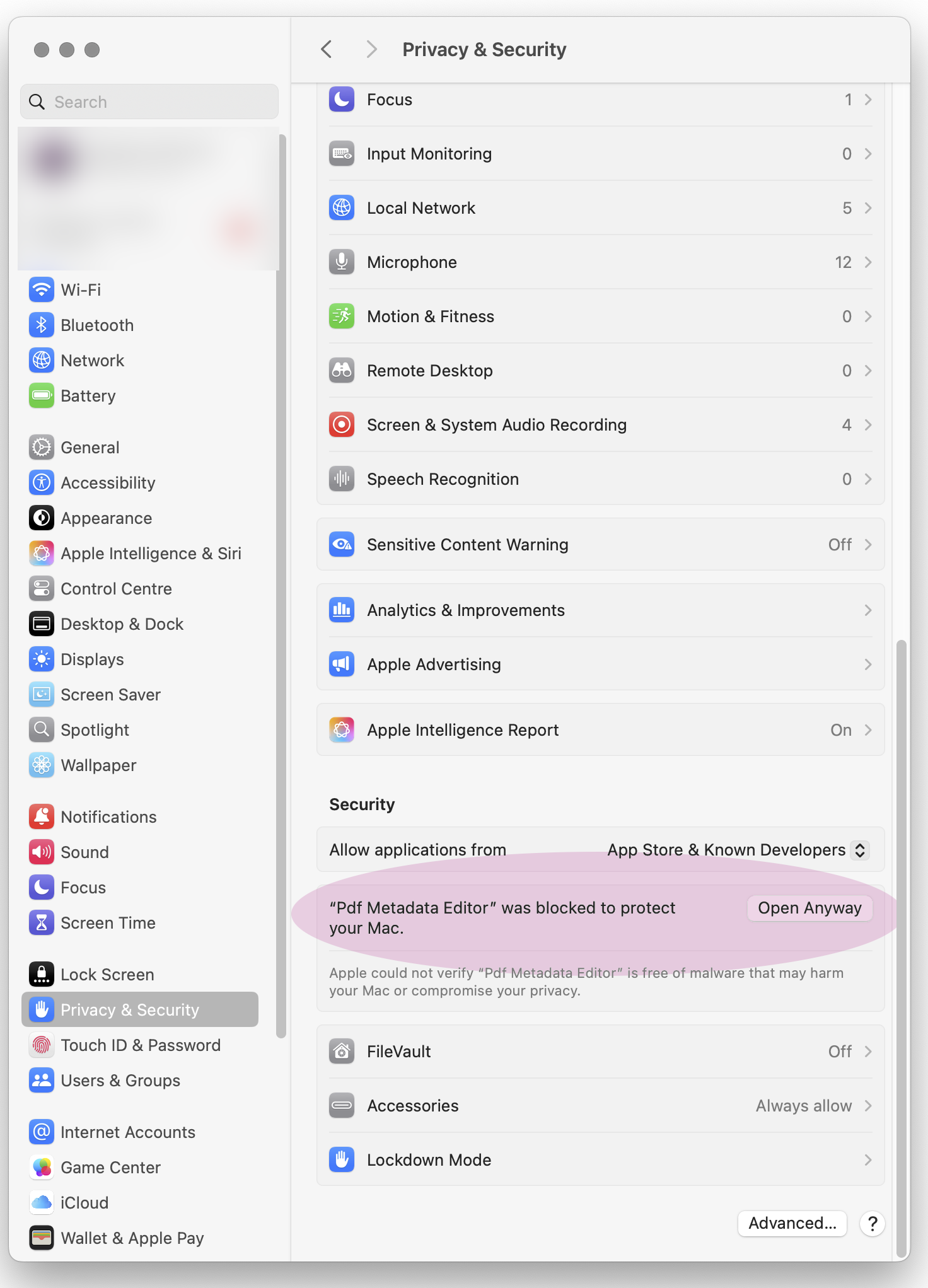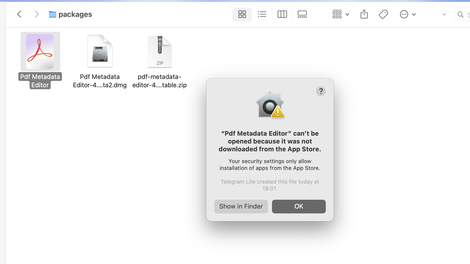 If you see "Pdf Metadata Editor Not Opened" OR "Pdf Metadata Editor can'be be opened because it was not downloaded from the App Store"
