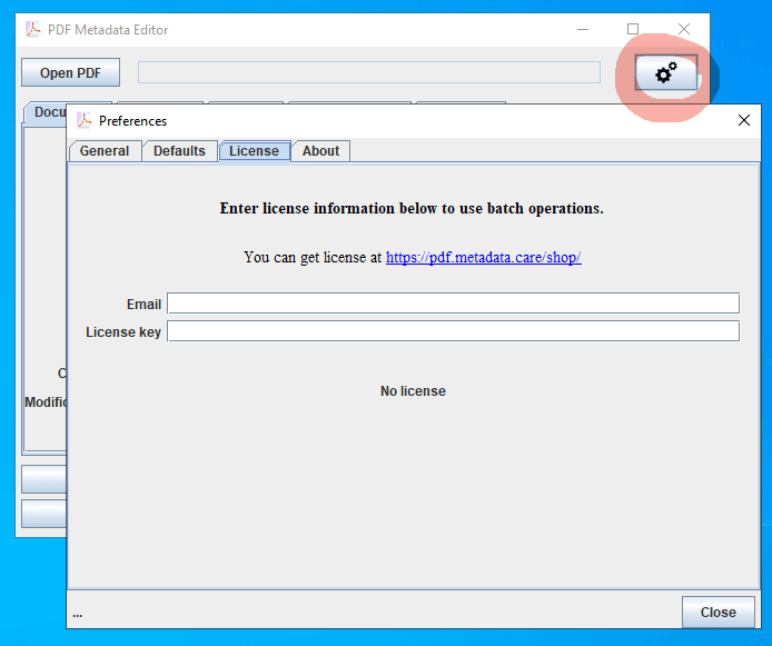 Or if you are using the command line using : pmedit-cli --license=email,key